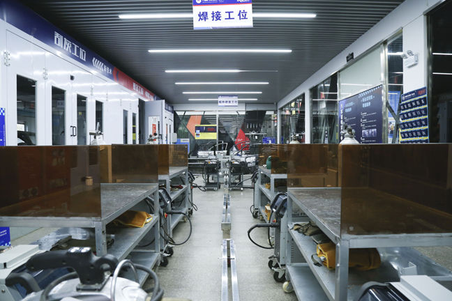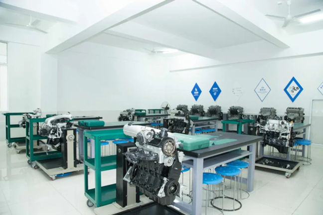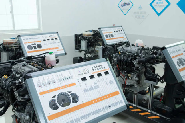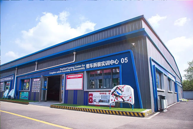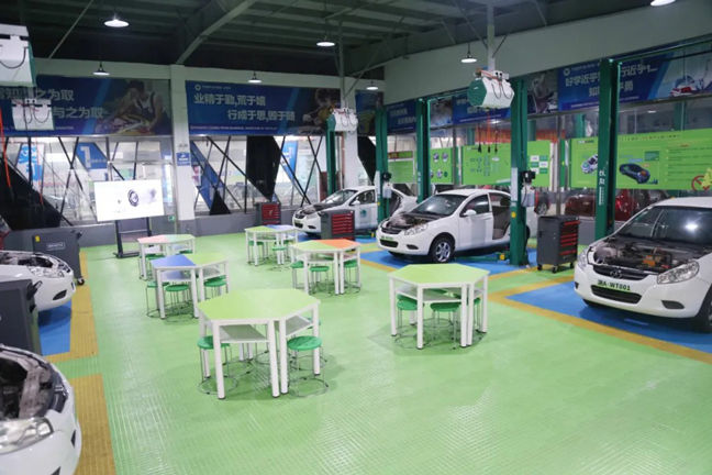 整车实训中心整洁空旷,老师们每天穿梭在这些区域为大家上直播课程。