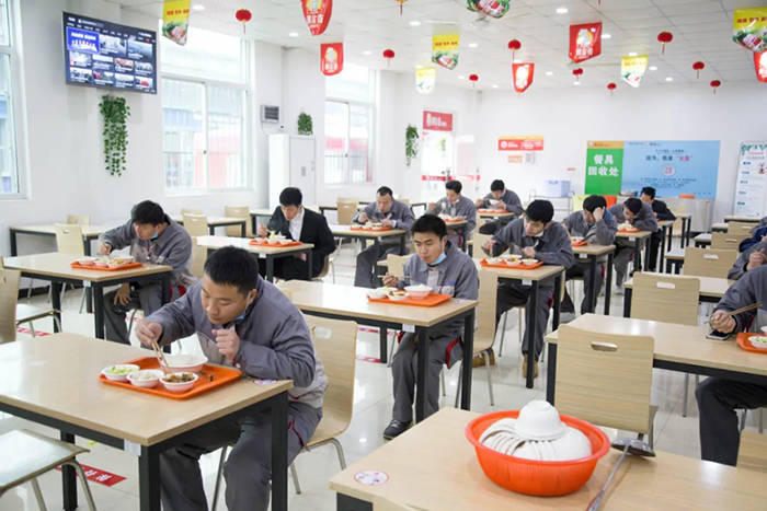 注:模拟食堂演练,老师们依次有序排队取餐、就餐