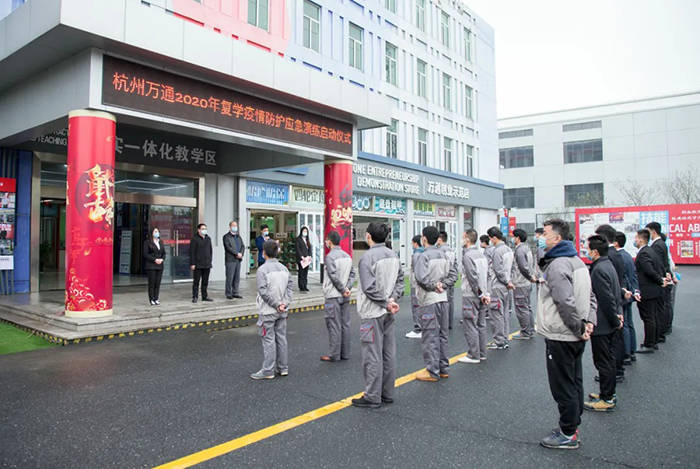 为做好疫情防控开学准备,也为了实地落实疫情防控各项措施和流程,确保操作规范和每一名师生安全复课,3月31日上午10:30,杭州万通汽车学校举行了春季开学疫情防控模拟演练,模拟开学后入校、教室学习、餐厅就餐、宿舍就寝、应急情况处置等操作规范和工作流程,全体教师和部分管理人员,各年级班主任和部分教职工参加了此次演练。